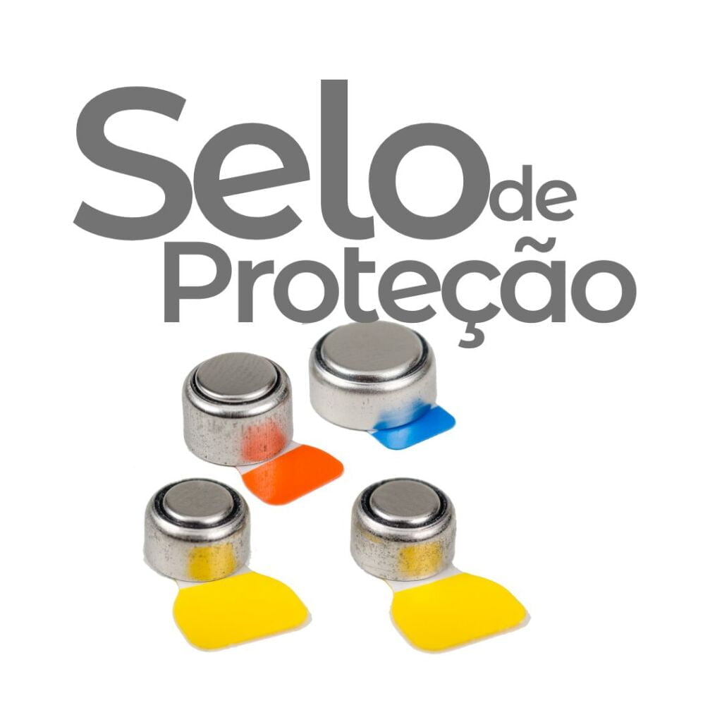 675 (selo azul) – A pilha de tamanho 675 é normalmente usada em aparelhos auditivos Retroauriculares de maior potência, e sua duração varia de 15 a 20 dias.